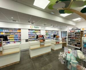 Cet agrandissement a permis de gagner de l’espace et d’optimiser l’ensemble de l’agencement de la pharmacie. La surface totale est passée à plus de 160m² (espace gagné à l’avant et à l’arrière du local existant), permettant de doubler la surface clients et de créer 2 cabines.